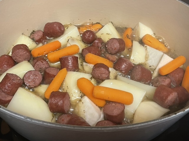 Il y a plusieurs styles de potée comtoise, et je l’ai fait deux fois. Après la recette de la potée, mais avant le dessert, je vous montrerai pourquoi j’ai fait des changements. Je dois beaucoup à la recette de Doubs Tourisme, mais vous verrez que celle-ci est la mienne.