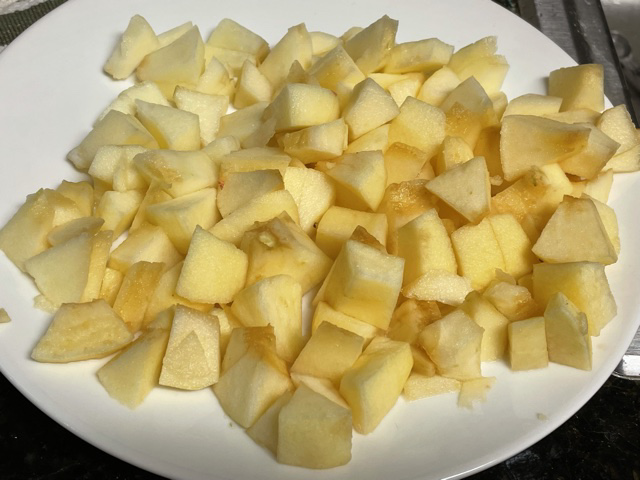 3 pommes rincées, épluchées, détaillées en cubes