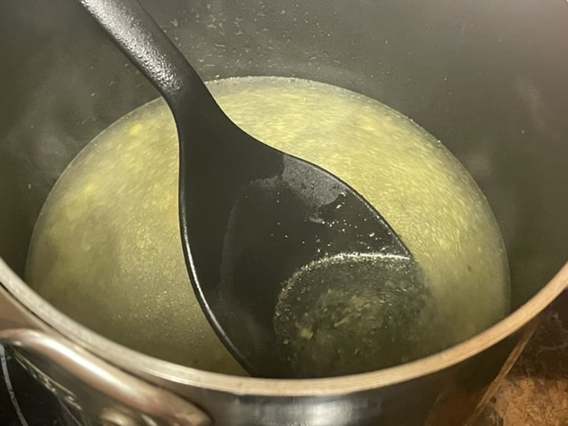 Faire fondre le bouillon de volaille dans une casserole avec 500 mL d’eau, et faire bouillir.