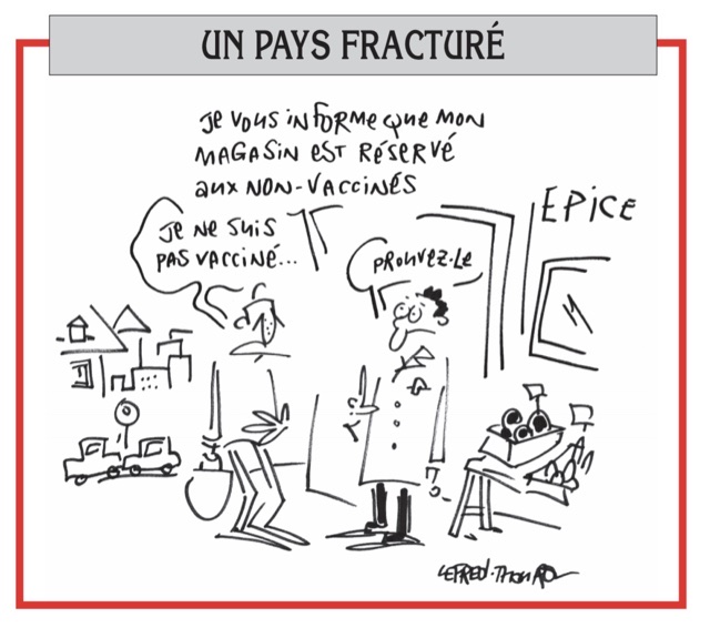 Je suis VRAIMENT en retard avec Le Canard Enchaîné cette semaine. On aurait pensé que dans son propre pays, je l’aurais lu tout de suite mercredi. Mais j’ai passé mercredi à Orléans, et je ne regrette pas du tout ce que j’ai fait au lieu. Les prochains deux jours ont été presque également occupés. Mais il s’avère que le thème du Canard cette semaine avait beaucoup à voir avec mon voyage ! Regarde, les mésaventures du pass sanitaire :