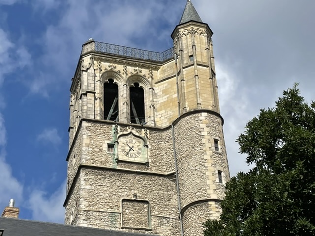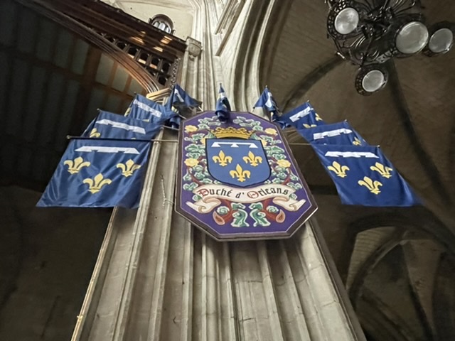 Après la cathédrale, nous sommes passés par l’ancienne Université d’Orléans où étudiait un jeune catholique appelé Jean Calvin (peut-être que ça aurait pu mieux se passer pour ses profs), et le beffroi, qui date des années 1450s. Selon un livre duquel on parlera plus en bas, le beffroi a coûté « 1264 livres, 17 sous, et 10 deniers parisis », suffisamment d’argent pour avoir acheté (à l’époque) 572 vaches, 969 porcs, ou « bien encore 37 788 poulets ». Mais les Orléanais ont préféré leur beffroi — et avec raison ! C’était, selon le même livre, « le symbole des libertés communales obtenues face au suzerain ». Il y a des choses plus importantes que du pain.
