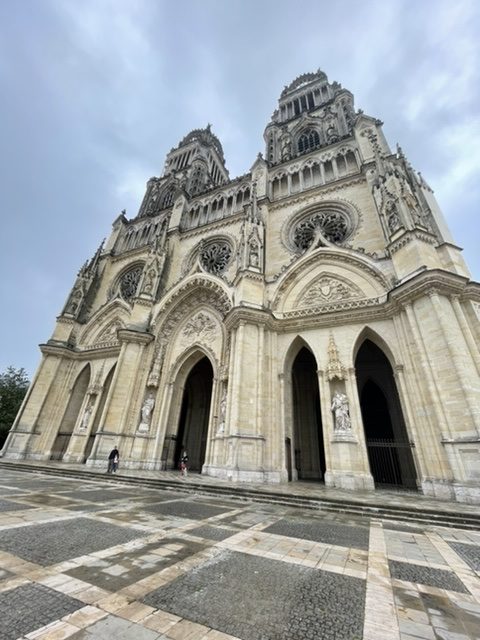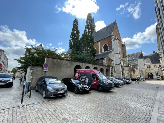 Après ces monuments, on est arrivé sur la Place du Martroi, l’un des incontournables d’Orléans. Ici, on trouve la statue équestre de Jeanne d’Arc en haut de ce post. Un renseignement intéressant — « la statue est fondue à partir de vieux canons anglais », selon notre livre. Près de la Place, on trouve l’Église Saint-Pierre du Martroi, la seule construite avec des briques rouges à Orléans :