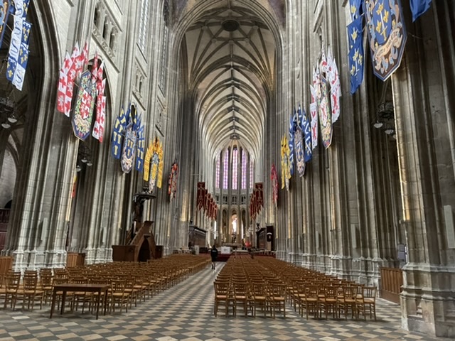 Oui, c’est Sainte-Jeanne-D’arc, bien sûr. C et moi nous sommes retrouvés dans la gare, et tout de suite nous avons commencé avec un lieu très précieux pour Sainte-Jeanne, la Cathédrale Sainte-Croix (2 étoiles Michelin).