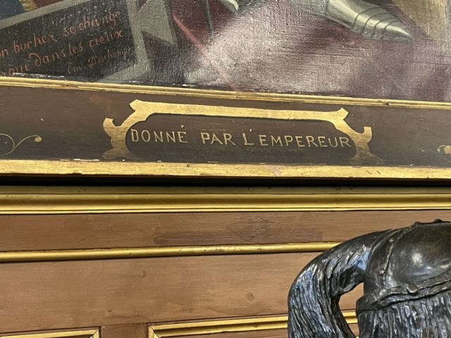 Je veux que vous fassiez attention à cette peinture de Jeanne d’Arc dans l’Hôtel Groslot — vous pouvez lire que c’est un cadeau de l’empereur :