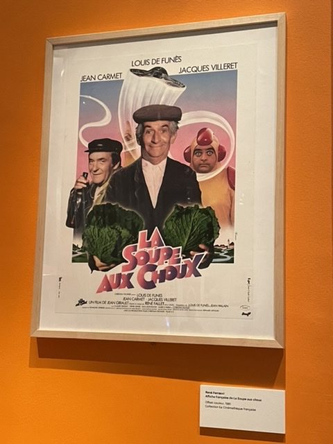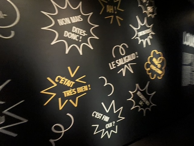 De Funès est très connu pour ses grimaces et ses bruits drôles, alors l’exposition a commencé avec un mur plein de références :