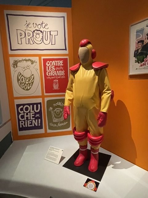 J’avoue, je ne comprends pas bien la fois où Coluche a essayé de gagner la présidentielle. Mais avec le costume de La Denrée, on trouve des affiches pour Coluche :