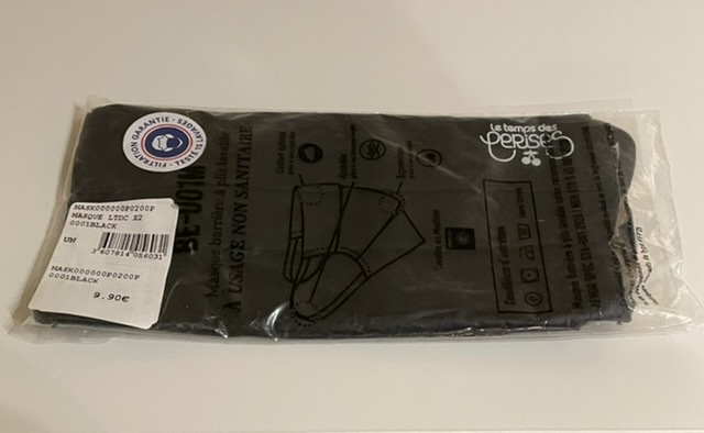L’autre fois, quand j’étais au Temps des Cerises, je venais juste de finir mes achats, et j’ai demandé à la vendeuse si je pouvais prendre des photos pour ce blog. Elle m’a dit oui, mais ensuite elle a ajouté « Veuillez patienter un moment, j’ai un cadeau pour vous. » Elle est parti pendant quelques moments, puis elle est retourné avec ça, un sac de 2 masques avec leur marque.