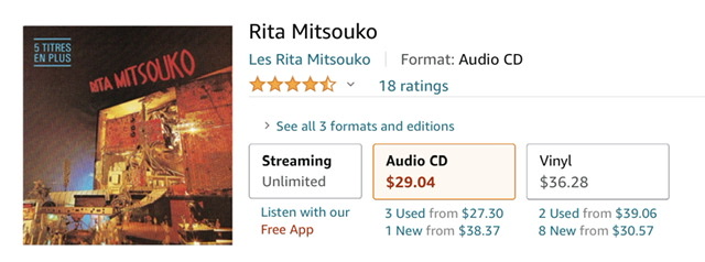 Il restait 4 albums des Rita Mitsouko que je n’avais pas encore dans ma collection. Plus maintenant — merci FNAC !