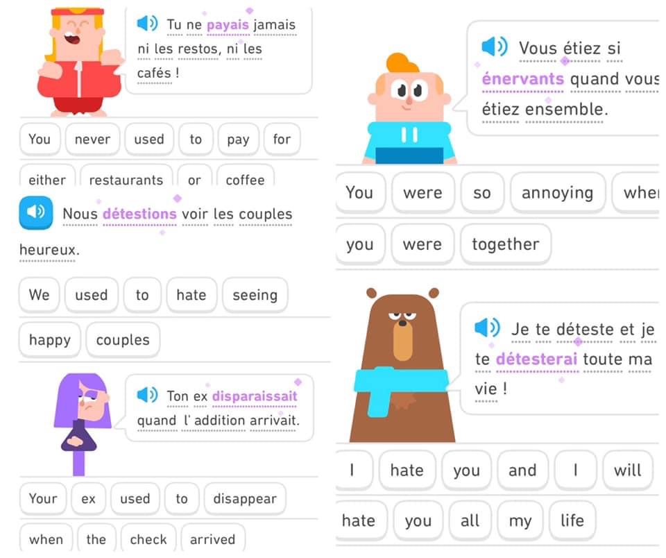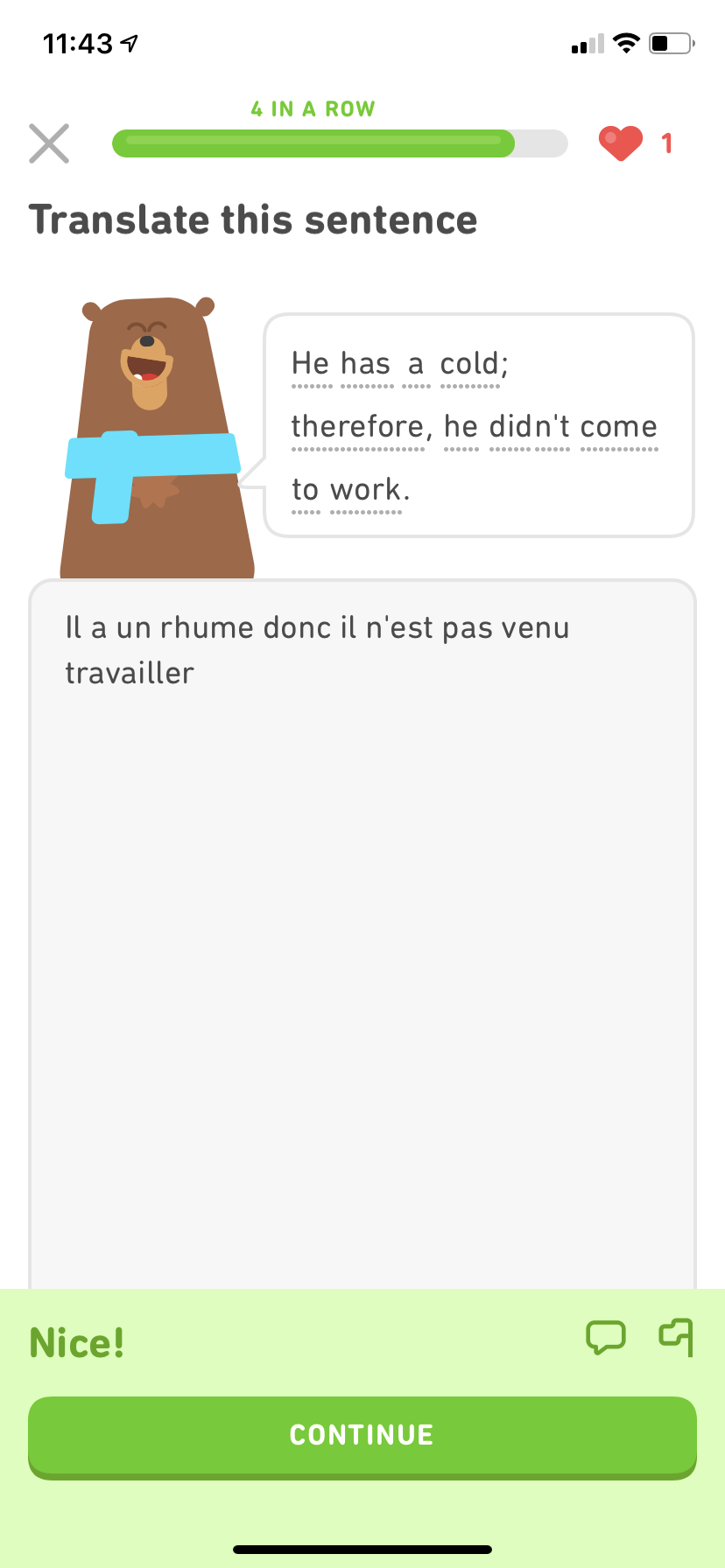 Mais je ne veux pas du tout être ingrat. Je suis ici, et je peux écrire tout ça, parce que Duolingo est avec moi depuis le début.