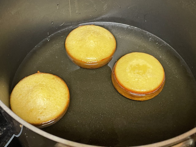 J’ai coupé par deux les recettes des babas et du sirop, mais j’ai fait toute la recette du crémeux. C’est difficile de couper 1 jaune d’œuf, après tout. Je vous présente toutes les quantités originales, au lieu de les avoir coupées. Aussi, « stoppez » n’est pas un mot français (désolé, je suis obsédé), alors vous verrez plusieurs changements comme ça si vous lisez le lien original.