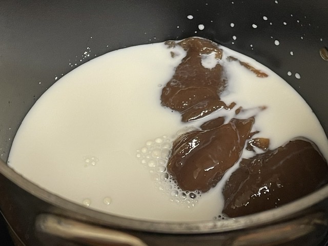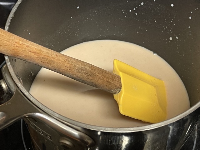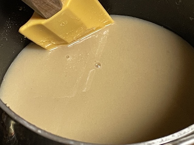 - Faites chauffer le lait, la crème de marrons et la Maïzena en fouettant.