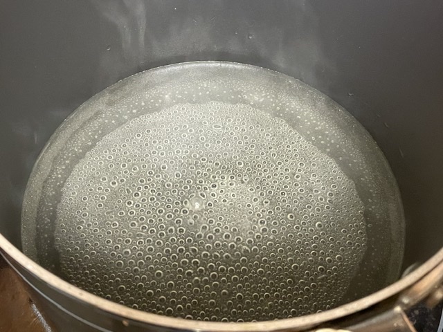 - Faites bouillir l’eau, le sucre et le café.