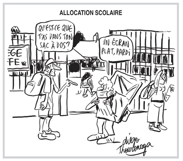 Je ne connaissais pas l’allocution scolaire ni cette histoire avant de voir ce dessin. Oh là là, quelle gaffe ! (Il y en a un autre sur le même sujet, mais celui-ci suffit.)