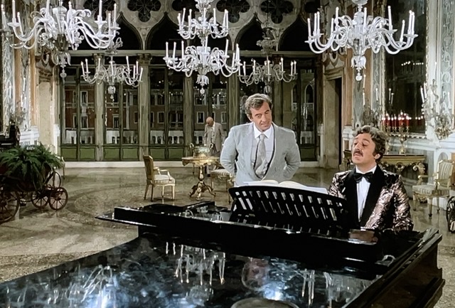 Belmondo visite l’ambassade des arabes qui veulent l’invention du scientifique. Ça se passe très mal, mais il s’échappe. Grâce à la scène avec le piano, je sais maintenant qu’une composition célèbre dont je n’ai jamais connu le nom est la marche funèbre de Frédéric Chopin :