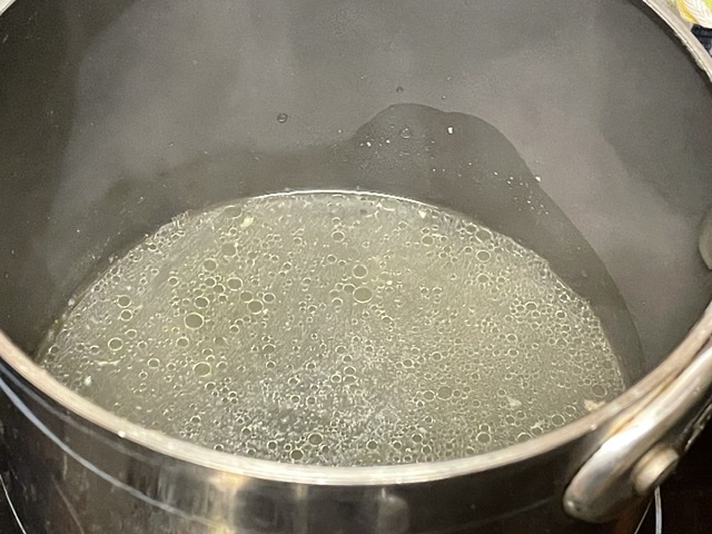 - Verser une partie du bouillon de poule dans une casserole, porter à ébullition, y cuire le riz 20 minutes. — On devrait utiliser deux fois d’eau que de riz, alors j’ai mesuré 200 grammes d’eau et 100 grammes de riz. N’oublie pas de baisser le feu et couvrir la casserole après avoir ajouté le riz.