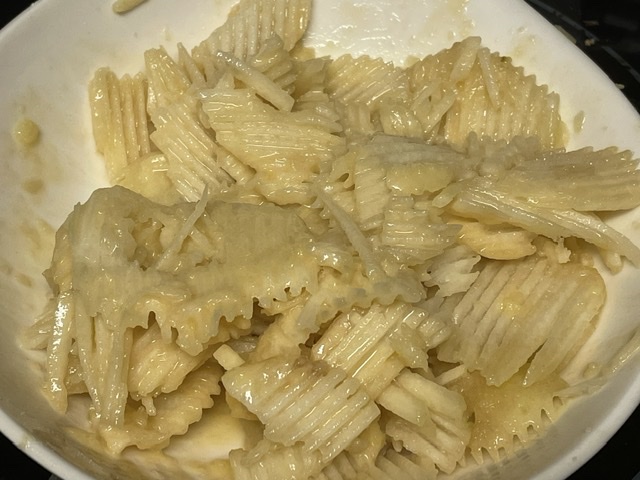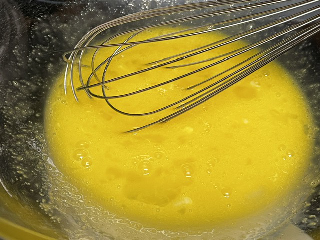 - Hors du feu, verser ce mélange dans la sauce chaude, fouetter énergiquement. Ne pas reporter à ébullition. Vérifier l’assaisonnement. — J’ai trouvé que j’ai eu besoin de plus de bouillon pour faire une sauce liquide — pendant cette étape, j’ai ajouté 50 cl de plus de bouillon, deux fois, alors 150 cl total.