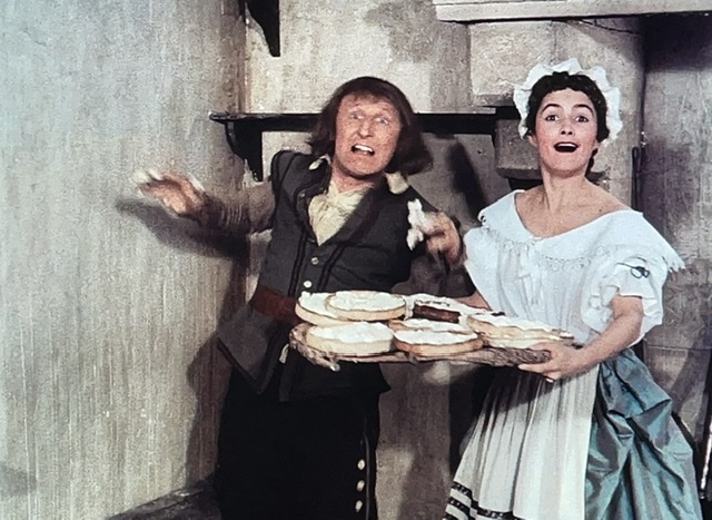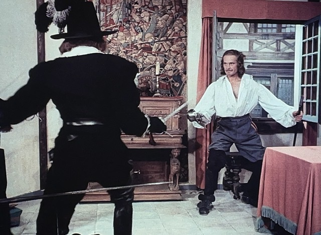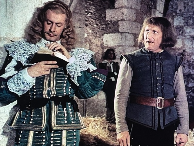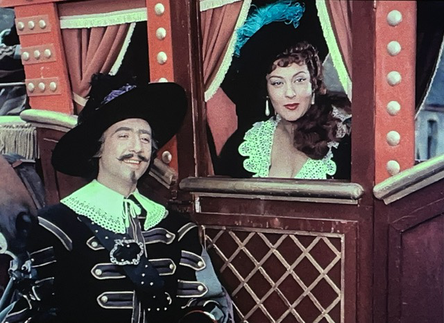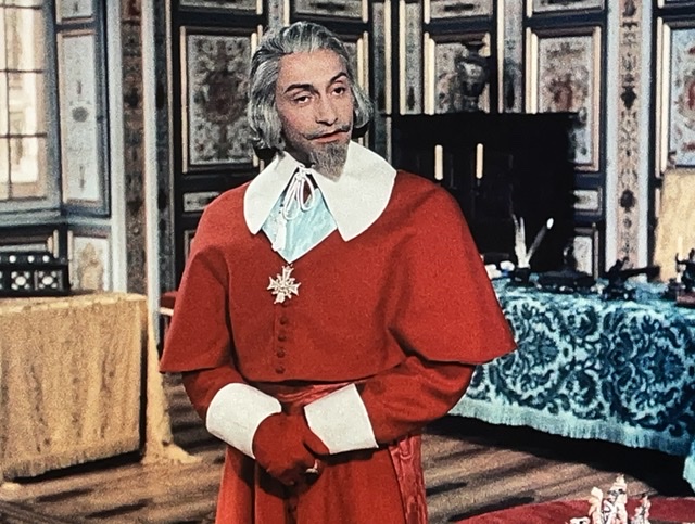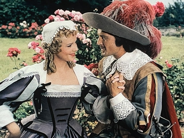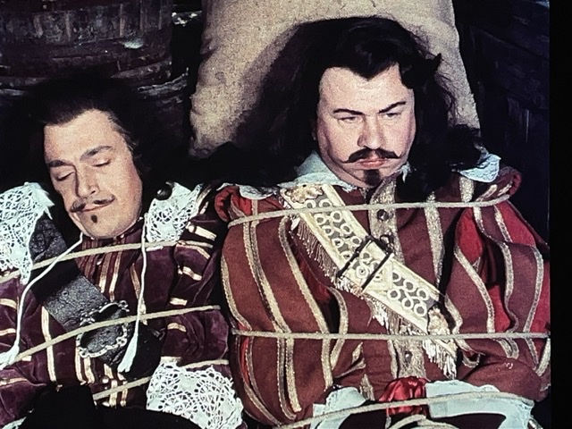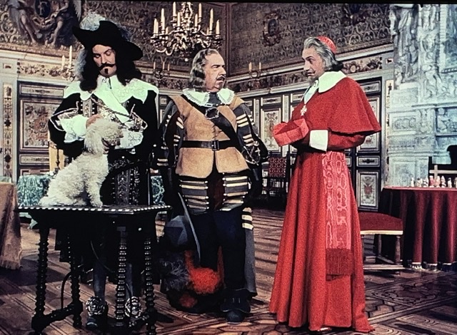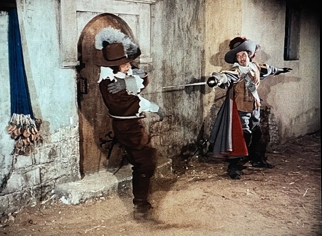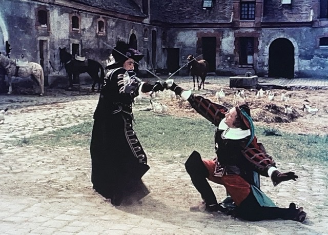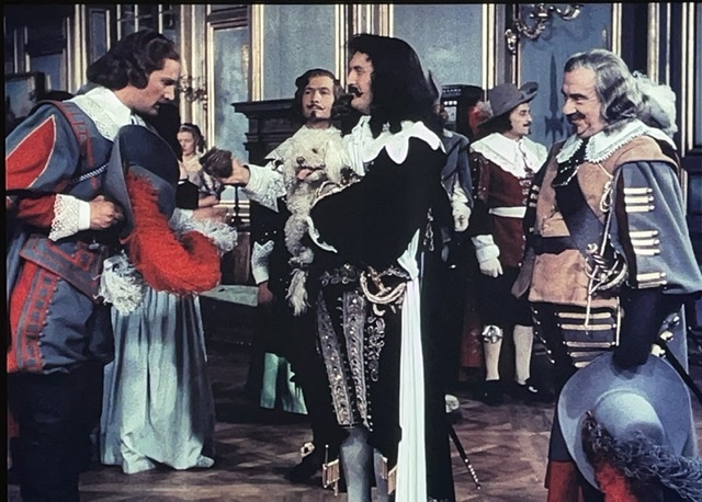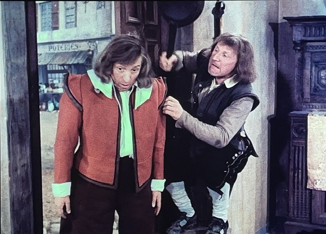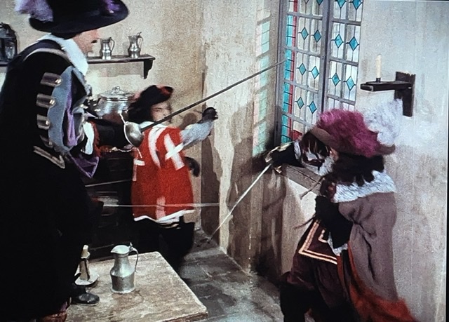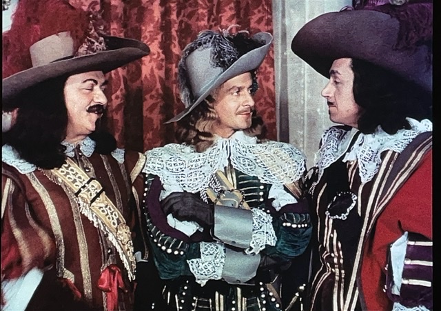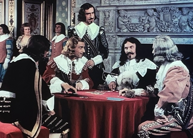 En tout cas, D’Artagnan engage un valet, Planchet (Bourvil), et tombe amoureux de la nièce du propriétaire de son logement. Il s’avère que Planchet est un peu voleur, et il pêche pour des bouteilles de vin. Le narrateur nous dit : « Ainsi ce qui menaçait de devenir un carême se transformait en Ascension. » Ce sont des mots de M. Dumas, ou M. Audiard ? J’aimerais bien savoir.