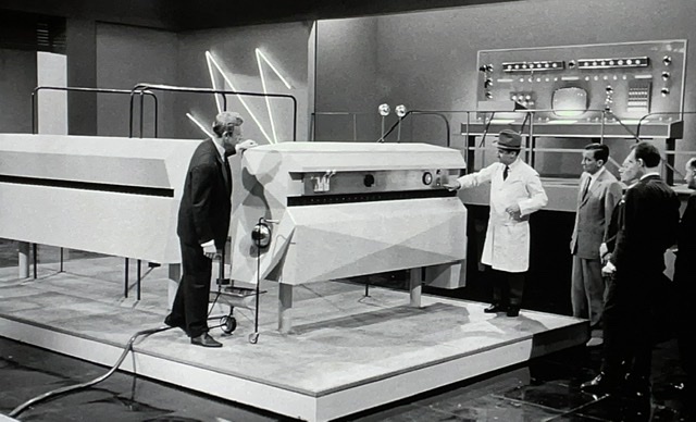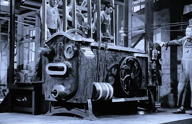 On commence dans une usine pour établir les personnages. Le réalisateur, Robert Dhéry, adore les machines impressionnantes, alors il nous montre quelque chose de compliqué juste pour extruder des barres métalliques.