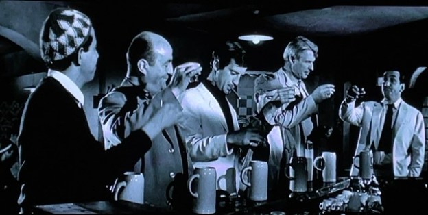 Je ne connaissais pas le mot « mirontons ». Mon dictionnaire dit que c’est en anglais « beef stew » (ragoût de bœuf). L’intention est assez claire. Je connais trop bien cette attitude — n’acceptez aucune position avec un patron qui parle de « être une famille » ici, surtout dans les entreprises de logiciels. Croyez-moi, je sais de quoi je parle. Mais peu importe en ce moment. L’homme à droit, Steiner, est censé être un chauffeur plus capable que les mirlontons. Il va quand même dans un bar pour faire la connaissance de ses nouveaux collègues.