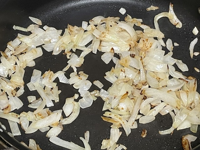 - Faites revenir vos oignons émincés dans une poêle avec une noisette de beurre.