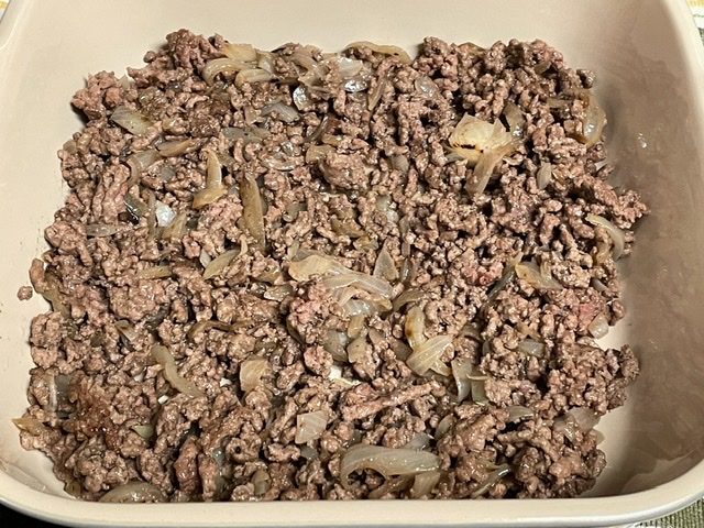 Pour notre plat principal landais, j’ai suivi la même stratégie que dans le Gard. J’aurais aimé faire le plat landais, l’assiette landaise,, mais il me manque les bons ingrédients — c’est difficile de trouver des gibiers de canard ici ! J’ai donc choisi un plat suggéré par un site du département, Qualité Landaise, qui nous propose ce Parmentier de Bœuf de Chalosse (le bœuf de Chalosse étant un produit IGP et Label Rouge).