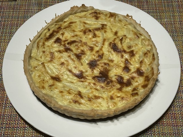 Ce soir, c’était encore un cours de cuisine avec l’Alliance Française, mais avec une surprise — c’était aussi seulement la deuxième fois où ma fille a mangé un plat principal français que j’ai fait ! (Voici le premier.) En ce cas, c’est une tarte à l’oignon alsacienne. Par hasard, la chanson de l’oignon est sa préférée de toutes mes chansons. Ouais, je suis bien surpris.