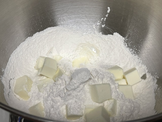 Couper le beurre puis l’ajouter au bol avec une pincée de sel.