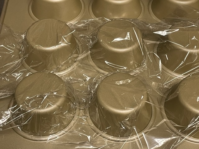 - Retourner un moule à muffins recouvrir les alvéoles avec du film plastique. Modeler la pâte en forme de petit bol autour de chaque cavité. Placer au congélateur 4 heures.