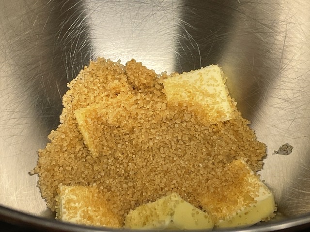 - A l’aide d’un robot pâtissier avec la feuille, crémer le beurre et la cassonade.