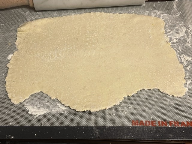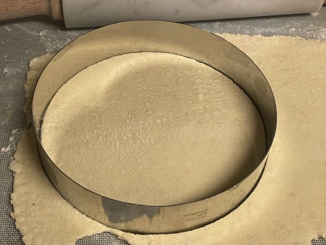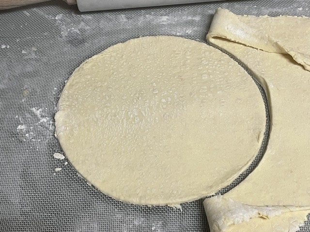 1. Si votre pâte est faite maison, couper un deuxième cercle avec un plus petit cercle de pâtisserie. Le mien fait 15 cm de largeur. Puis continuer.