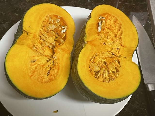 1. Couper la kabocha en deux.