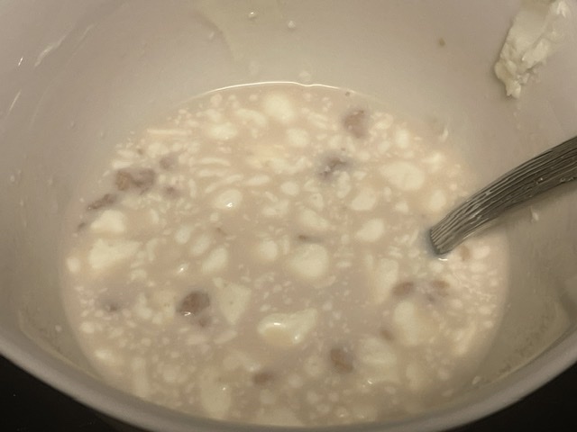 - Porter à ébullition — ou presque, pas besoin de bulles — le lait. Laisser tiédir. Séparer le lait dans deux verres.