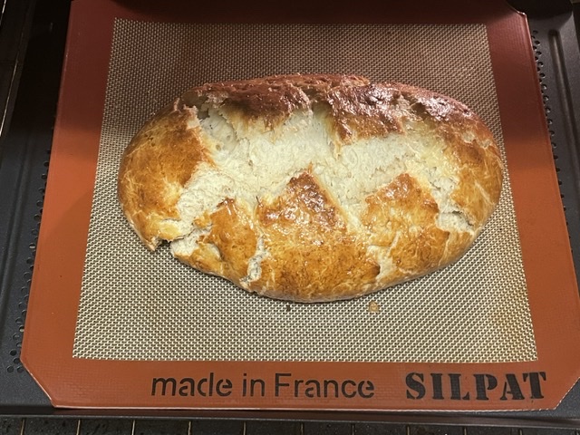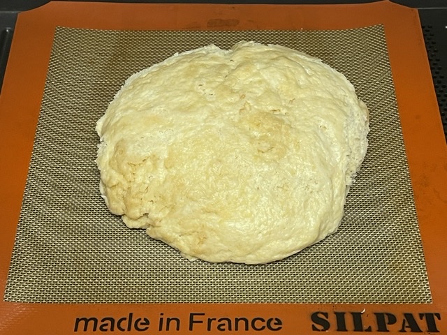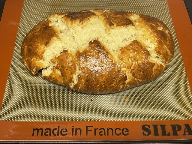 - Dégazer la pâte et la façonner en forme ovale. Inciser et laisser lever 1 heure en couvrant d’un torchon.