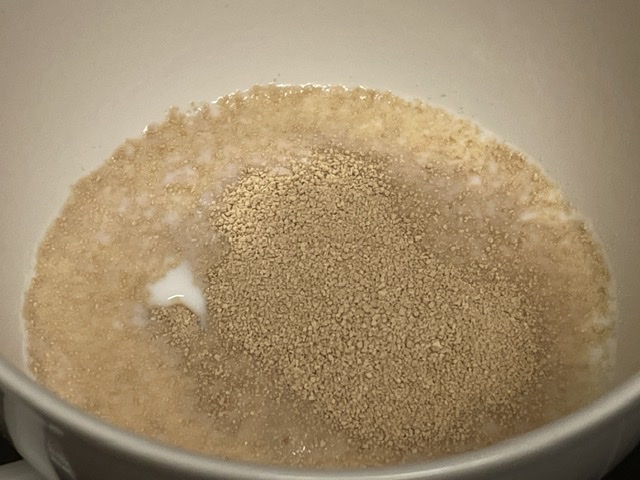 - Délayer la levure dans un verre de lait tiède. Laisser mousser pendant 7-10 minutes.