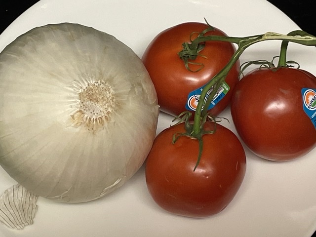 - Rincer et couper les tomates et l’oignon en tout petits dès. Moi, j’enlève le chair juteux des tomates pour ça.