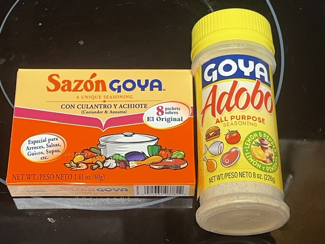 - Du sel et du poivre à moulin (pas besoin de trop de sel — il y en a dans le sazón et l’Adobo)