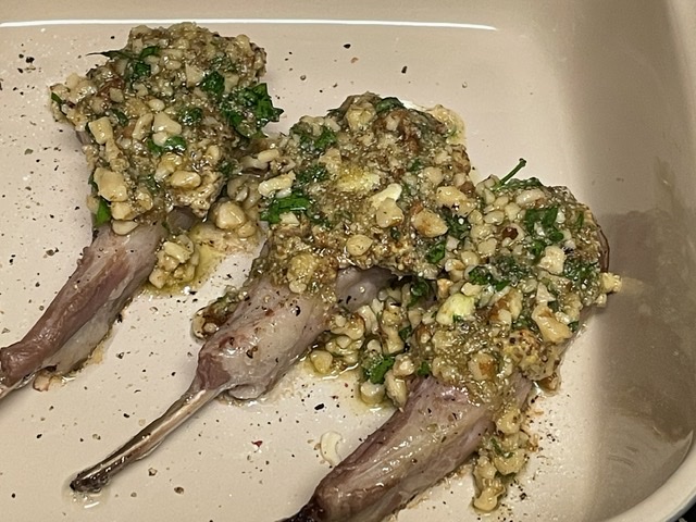 Ce menu est un peu à la mode, avec des escargots dans des « ebelskivers », un genre de crêpe danoise, et des ingrédients asiatiques un peu partout. Parce que nous étions 16 — et allions payer un pourboire obligatoire de 22 % — le chef a envoyé deux grandes assiettes de la salade de laitue « baby gem » aux pêches à la table, gratuites.