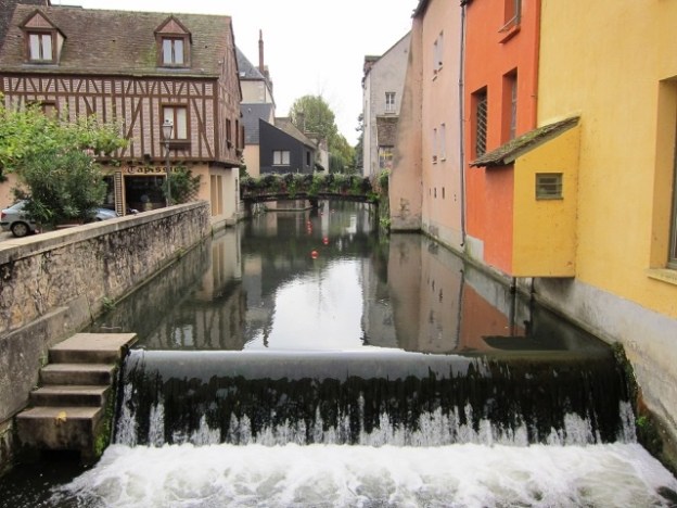 À l’est d’Orléans, on visite le Château de Sully-sur-Loire (1 étoile). Ce château construit originalement au XVe siècle abrite une intéressante chambre du roi, construite pour Henri IV, mais jamais utilisé par lui. On continue au nord jusqu’à l’un des Plus Beaux Villages de France, Yèvre-le-Châtel. Ici, il y a les ruines d’une forteresse du XIIIe siècle, et l’Église Saint-Gault, de la même époque, mais avec un vitrail Art-Deco ! On finit à Montargis, la « Venise du Gâtinais », un village si beau que je me souviens que c’était la première chose enregistrée dans mon fichier ! On est là pour une promenade le long du quartier de la pêcherie, dans la photo en bas.