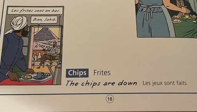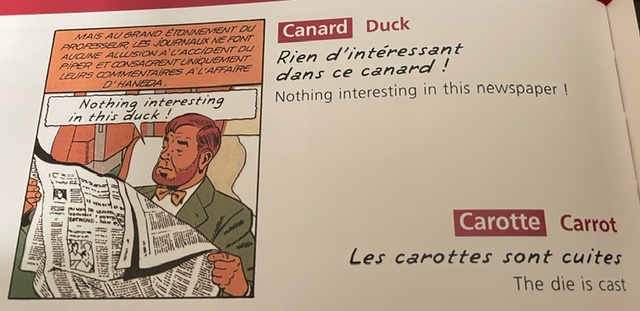 J’ai essayé des listes d’expressions idiomatiques écrits par de meilleurs bilingues que moi. Cet article promet une centaine d’expressions, mais franchement il ne casse pas trois pattes à canard. Wikipedia (en anglais) m’a donné une belle liste de francismes en anglais, dont le « footing » version française, « double entendre » — on ne dirait jamais ça en français, mais plutôt « à double sens ». Un site appelé « All About French » (Tout sur Français) offre plusieurs centaines, mais c’est un truc de fou — pas de bons choix non plus.