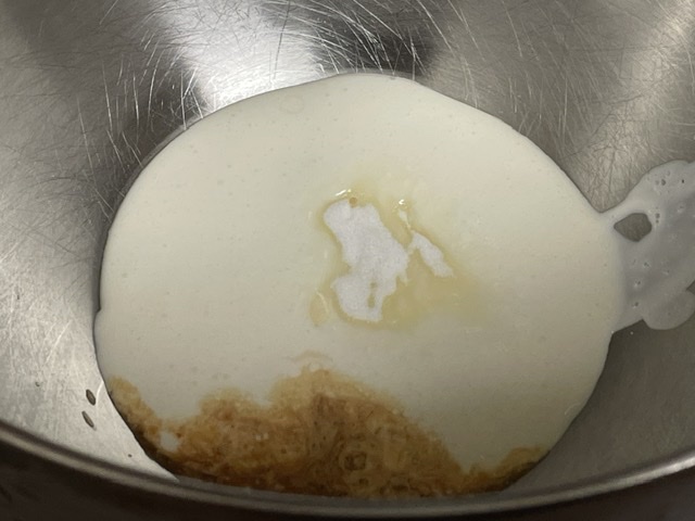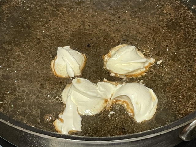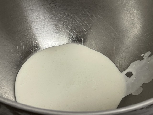 On passe au dessert, le crêmet d’Anjou. C’est plutôt inhabituel d’utiliser une compresse de gaze comme outil de cuisine, mais c’est ce qui demande la recette originale — ce que je dois à Anjou Tourisme. J’ai plutôt utilisé du parchemin. De toute façon, j’ai dû faire quelques changements, mais rien qui n’a changé le caractère de la recette.