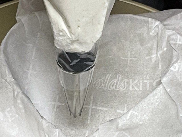 Verser la préparation dans un moule à crêmet préalablement tapissé de compresse de gaze et placez au frais pour 3 h. — Je l’ai mis dans une poche à douille, mais c’est pas nécessaire.