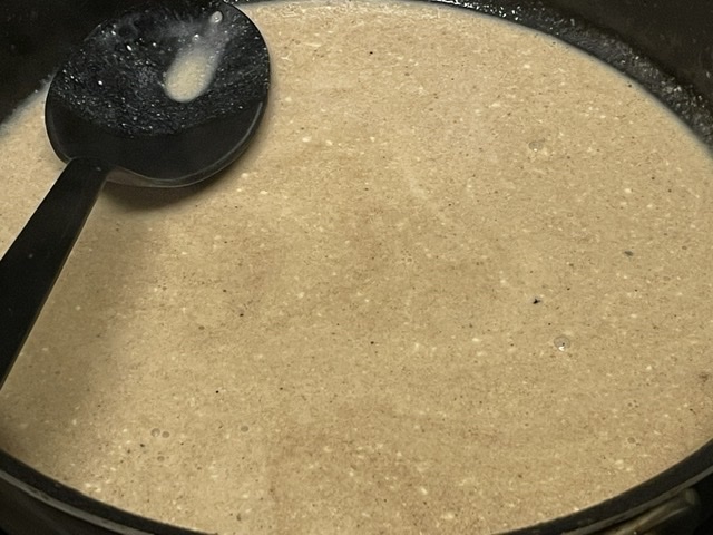 Veuillez remarquer que cette sauce est fait exactement comme notre dernière, où de la crème fraîche est ajoutée aux restes d’une préparation. Mais cette fois, la sauce est lisse et homogène — on peut utiliser le « sour cream » au lieu de crème fraîche pour les appareils de quiche, mais JA.MAIS pour les sauces. Attention au cas où vous déménageriez ici !
