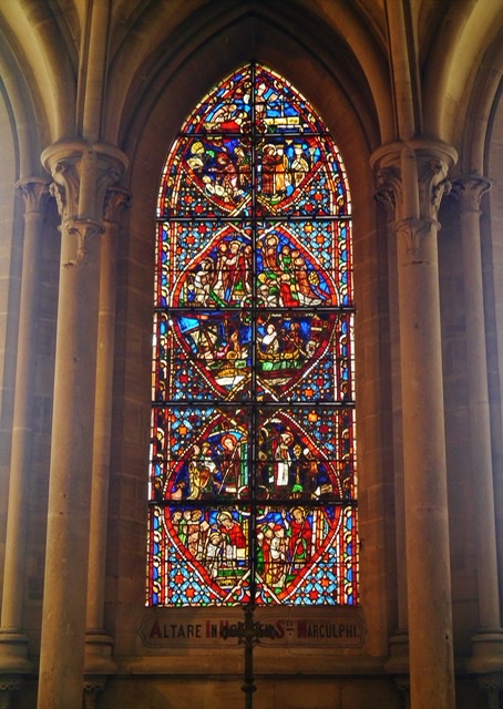 Saint-Lô existe depuis le Moyen-Âge, mais presque aucun bâtiment n’existe sauf depuis après la Seconde Guerre mondiale. Si je vous dis que cette ville a reçu la Légion d’Honneur en 1948, ça vous explique pourquoi ? Il n’y a rien de notre patrimoine habituel, mais je considère cette étape un devoir, un pèlerinage. Voici la liste des lieux de mémoire — on visite le Mémorial de Graignes et la Stèle de Saint-Clair-sur-L’Elle. Il y a un blasphème dans la ville, et si on y arrête pour se soulager, je ne vois rien. Pour une fin heureuse, on visite le Musée d’Art et d’Histoire pour leur Rotonde de Tapisseries.
