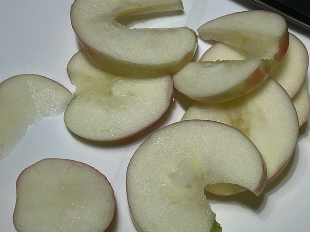 Lavez et essuyez les pommes. Coupez-les en quatre sans les peler si la peau est fine, retirez le cœur et les pépins puis détaillez-les en tranches ou en dés.