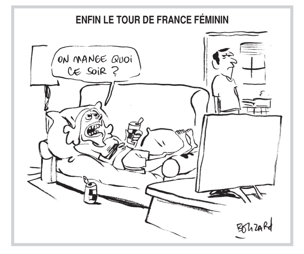 En ce moment, le premier Tour de France pour les femmes est arrivé. Le Canard imagine que ça veut dire que les rôles domestiques stéréotypés sont inversés. Mon avocate m’interdit de dire plus.