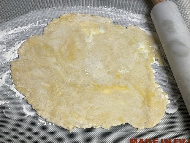 - Fariner votre plan de travail, puis abaisser la pâte.