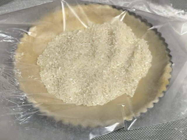 - Piquer avec la fourchette. Couvrir de papier sulfurisé recouvert de haricots ou de riz.
