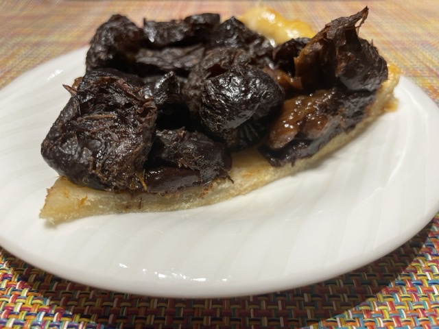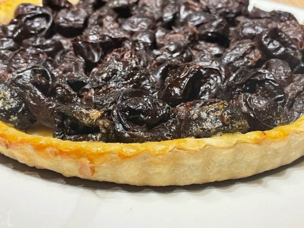 Une fois sorti, laisser refroidir au moins 15 minutes avant de démouler. Ouais, c’est facile avec un moule à tarte, mais il ne vaut pas la peine de vous brûler. Quant au goût, il n’y a aucun mystère avec cette tarte. Si vous aimez les pruneaux, vous allez l’aimer..