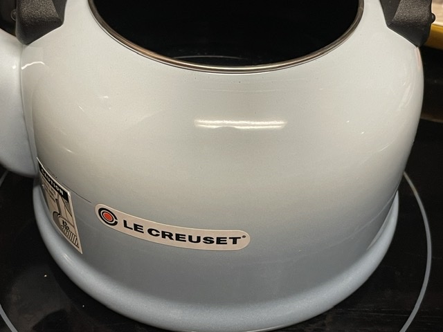 - Préparer du thé — il serait stupide de le laisser refroidir, puis le réchauffer à nouveau. Vous n’avez jamais vu cette bouilloire sur ce blog, mais elle est avec moi depuis 2013 — et j’ai dû l’importer de l’Angleterre pour trouver la bonne couleur qui va avec ma cocotte, car Le Creuset fait des restrictions géographiques pour leurs couleurs. Ouais, je suis « comme ça » depuis longtemps — et fier de l’être.