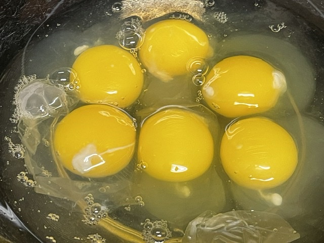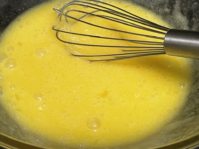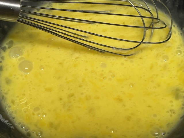 1. Pendant que le lait chauffe, battre 6 œufs dans un grand saladier.
